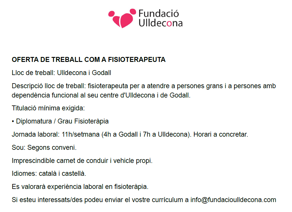 OFERTA DE TREBALL COM A FISIOTERAPEUTA