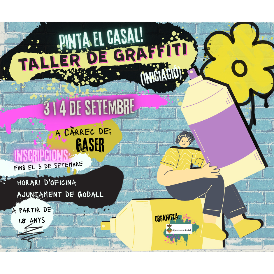 L'àrea de Joventut de l'Ajuntament De Godall informa que s'obre el període d'inscripció per al TALLER DE GRAFFITI.