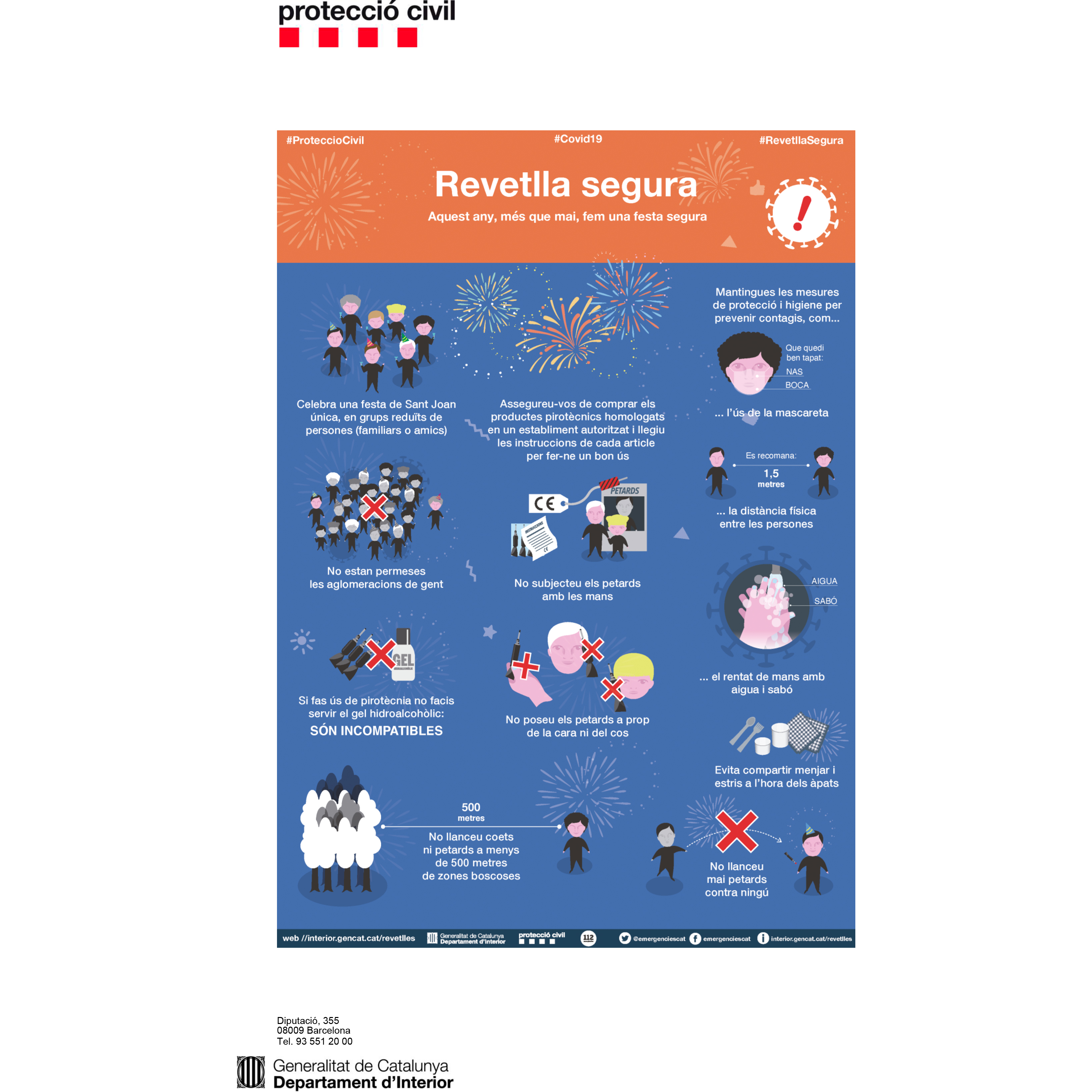 FESTES POPULARS | Fem un Sant Joan diferent amb grups reduïts, amb la família i els amics, però amb molta precaució, tant per evitar possibles contagis de la COVID-19 com per evitar els accidents fent un mal ús del material pirotècnic.