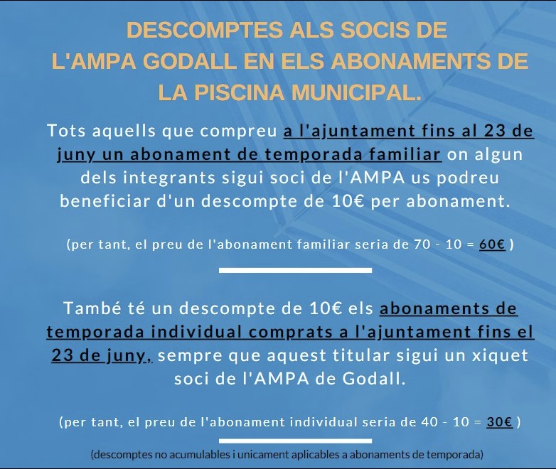 #PiscinaMunicipal #DescomptesAMPA #AbonamentsPiscina #Godall2021